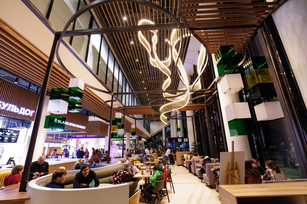 В состав проекта входят ресторан, два кафе, а также фуд-холл с восемью корнерами и двумя островами. Сегодня гастропространство заполнено арендаторами на 95%.