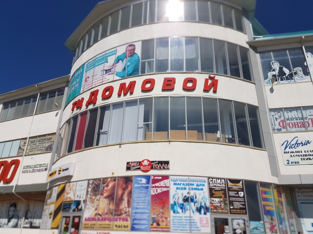 ТЦ «Домовой» расположен на центральной улице города в районе с развитой инфраструктурой. Большой транспортный трафик обеспечен нахождением ТЦ «Домовой» на дороге Краснодар-Новороссийск. Большой пешеходный трафик обеспечен расположением ТЦ «Домовой» в шаговой доступности всех муниципальных организаций города и района. Все помещения имеют высоту потолков 4.5 метра .Собственный узел учета. Имеется возможность телефонизации выбранного помещения и подключения высокоскоростного интернета. Помещения оборудованы пожарной сигнализацией .Центральное кондиционирование .видеонаблюдение .охрана. 2 грузопассажирских лифта