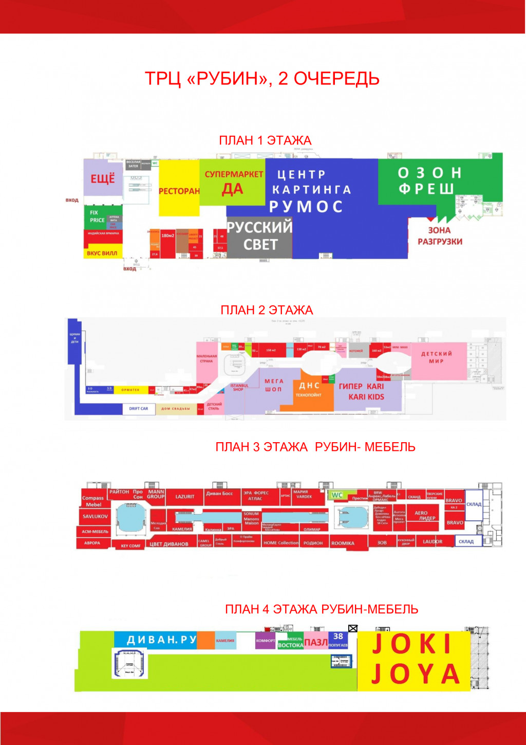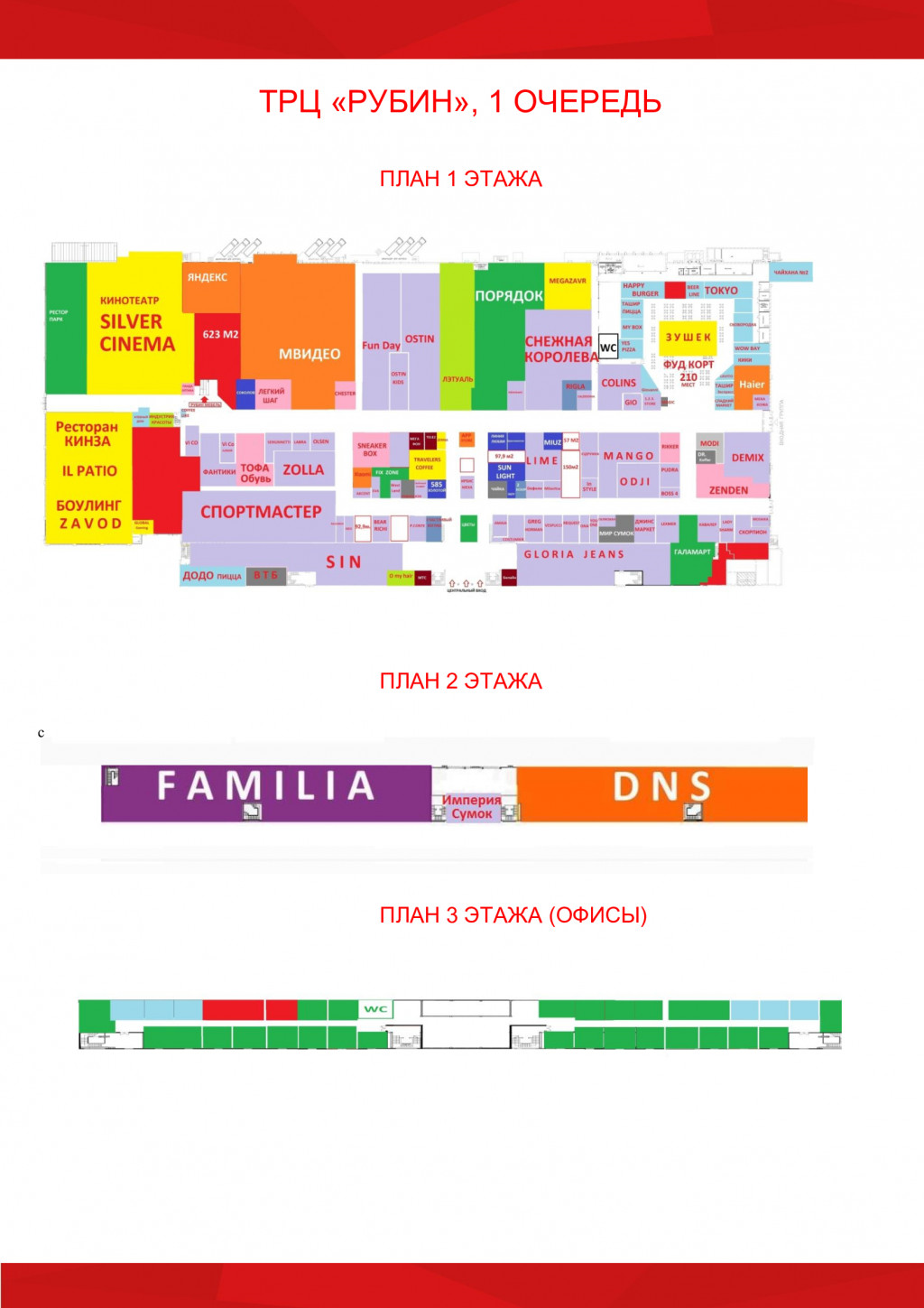 3. Мощная развлекательная и семейная зона: «Рубин» позиционируется как комплекс с мощной развлекательной зоной, включающей кинотеатр, детские развлекательные центры и широкую зону кафе и ресторанов. Это формирует среду для продолжительного семейного досуга, увеличивая время пребывания гостей и их покупательскую активность.
