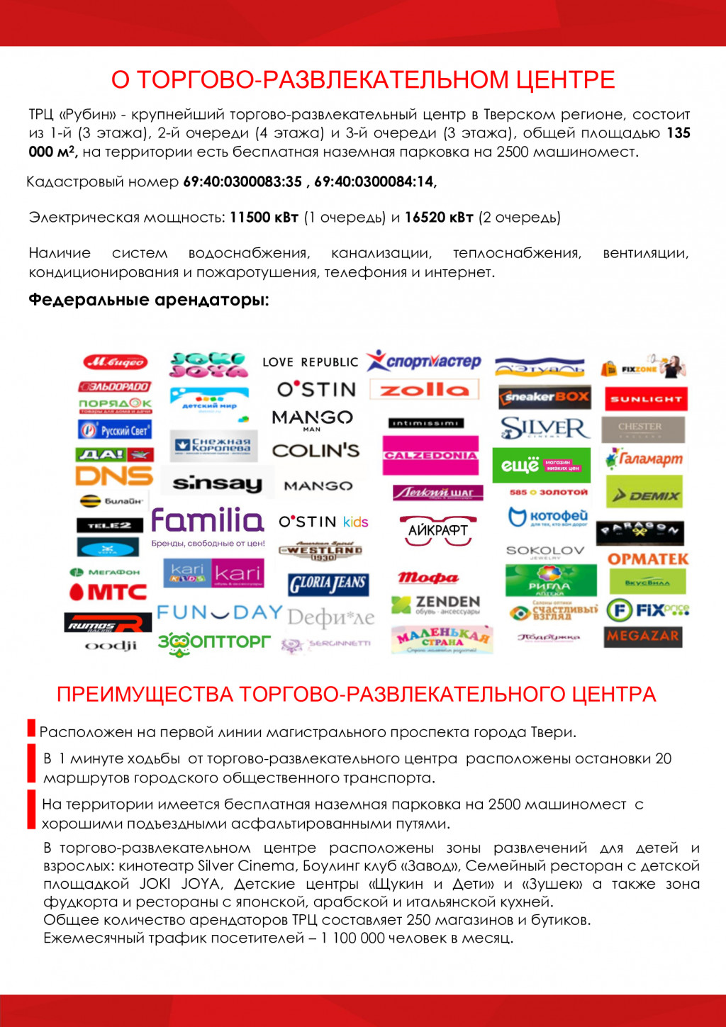 2. Максимальный трафик и лучшая локация: Центр посещают до 18 000 человек ежедневно (свыше 500 000 в месяц),...
