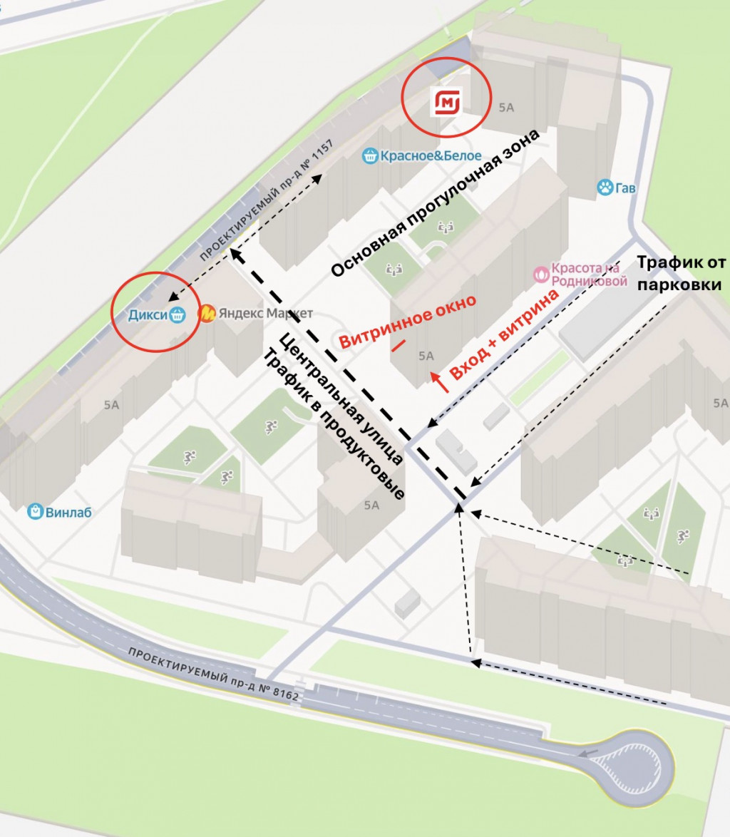 - в ЖК уже располагаются якорные сети: Дикси, Магнит, ПВЗ маркетплейсов
