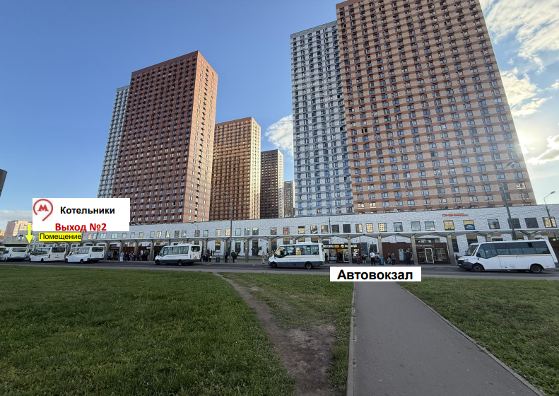 Первая линия от метро "Котельники", 20 метров до входа , напротив автобусных и маршрутных остановок возле Автовокзала