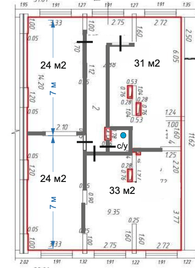 Площадь искомых помещений: