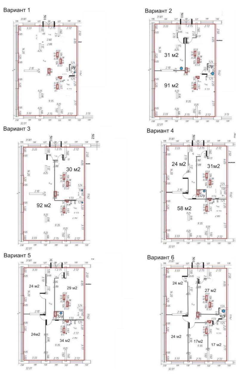 Свобoдные площади от 16 до 58 м2