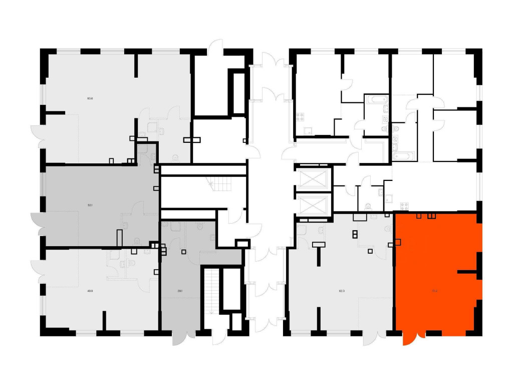 - Открытая планировка и возможность объединения помещений