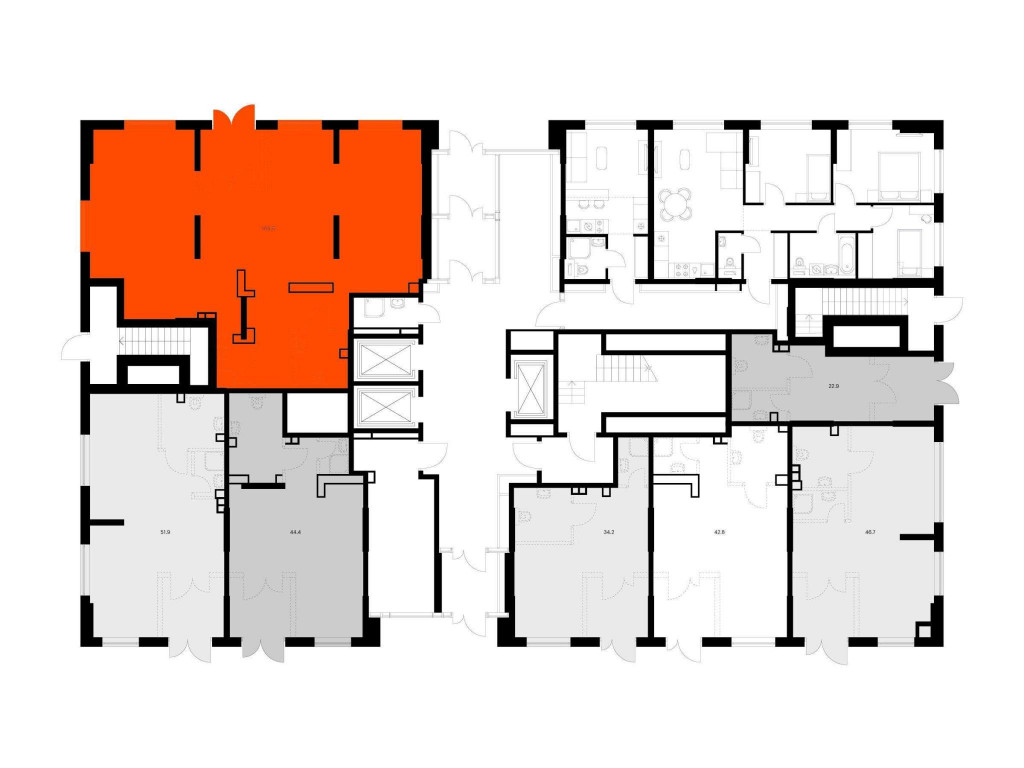 - Открытая планировка и возможность объединения помещений