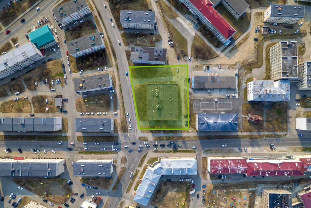Имущественный комплекс расположен на первой линии ул. Коммуны, гармонично дополняя развитую инфраструктуру района. Помимо жилых и коммерческих объектов, учебных и медицинских учреждений, в окружении находится Городской парк. На его территории размещены: ледовый комплекс, театр, администрация и стадион.