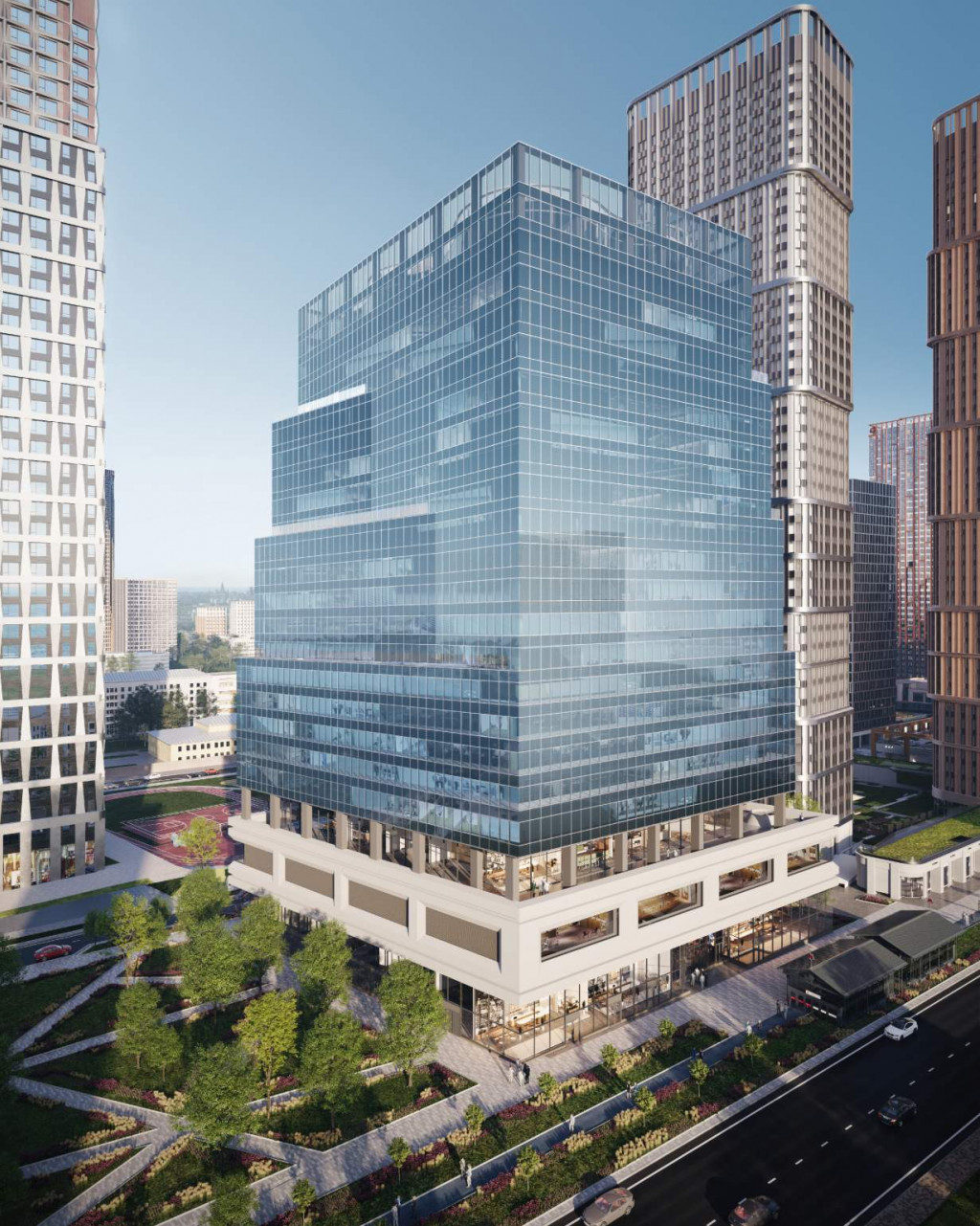 Верхние этажи БЦ будет занимать штаб-квартира ГК ФСК (20 000 м2), переезд запланирован на 2 кв. 2026 г.