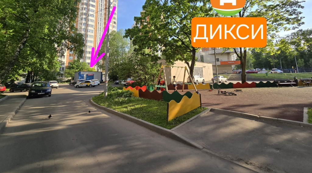 Отличное расположение, посреди двора на пересечении народных троп, вокруг многоэтажки. У съезда на СВХ. Недалеко станция Грачёвская и метро Ховрино.