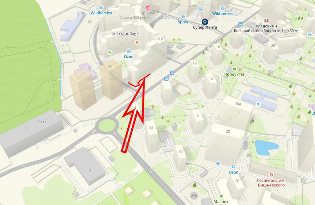 О комплексе: «Одинбург» — масштабный проект AFI Development в Одинцово, строящийся по принципу «город в городе». На территории 33 га появится 450 тыс. кв.м жилья и социальных объектов. Комплекс включает 11 монолитных корпусов высотой от 16 до 25 этажей. В двух очередях планируется поселить более 24 000 человек, поэтому коммерческие площади на первой линии будут востребованы.