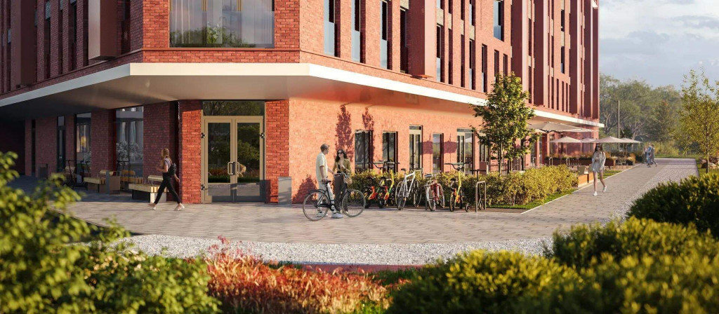 В 15-этажном здании будет 430 апартаментов. На выбор доступны варианты площадью от 19 до 39 м с готовой отделкой и панорамным видом на реку и город с верхних этажей.