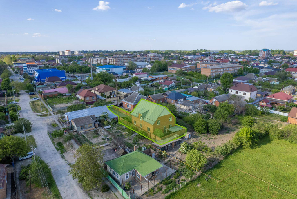 Имущественный комплекс расположен среди индивидуальной жилой застройки. Ближайшее окружение, помимо частного сектора, включает: школу, бассейн, торговый центр, стоматологию и администрацию. Всего в 300 м от объекта находится остановка общественного транспорта, в 1,51 км автовокзал.