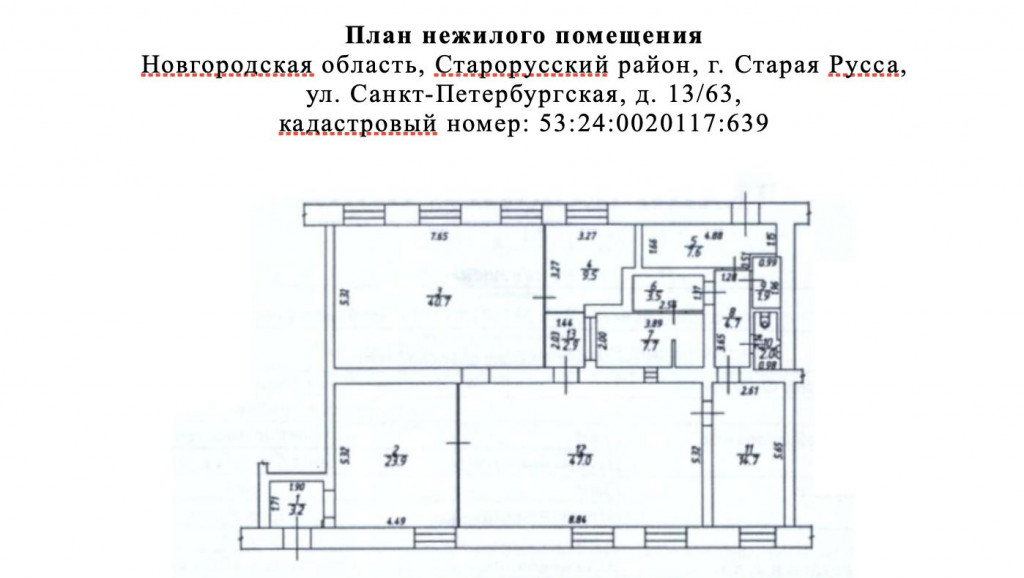Сбер А предлагает к реализации нежилое помещение площадью 169,3 кв.м., расположенного по адресу: Новгородская область, Старорусский район, г. Старая Русса, ул. Санкт-Петербургская, д. 13/63