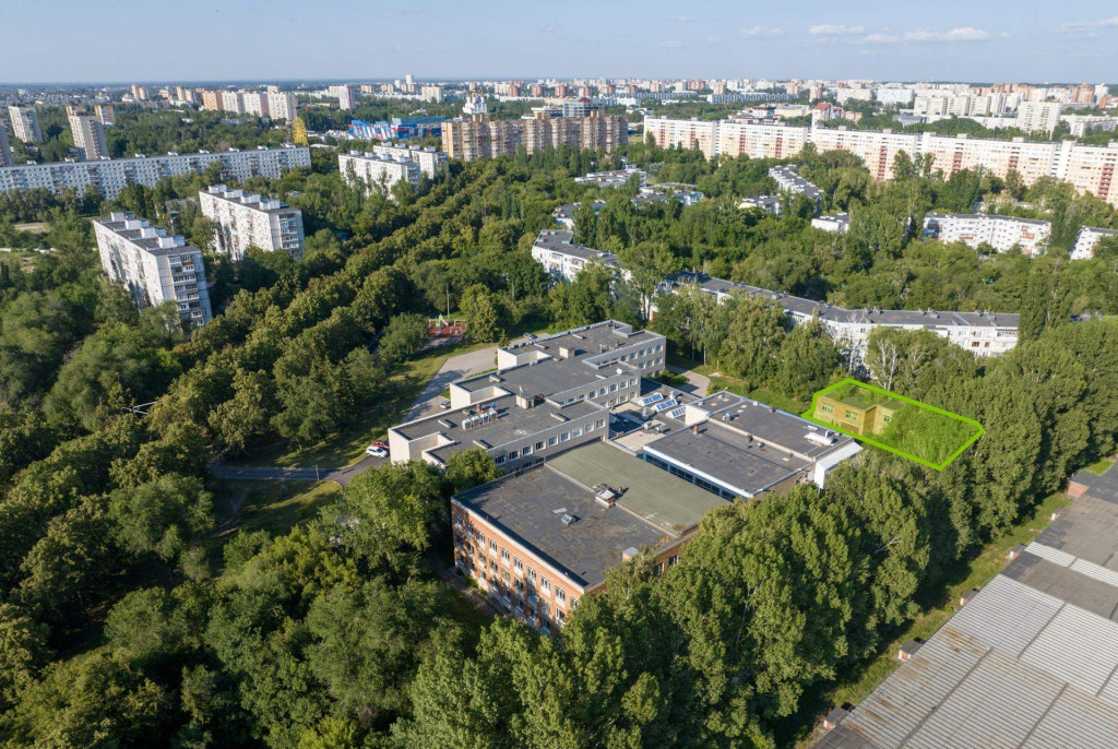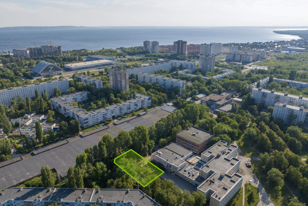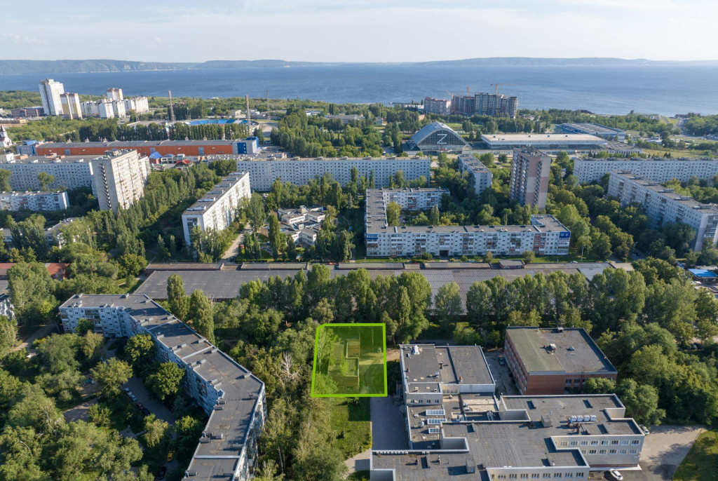 Земельный участок в автозаводском районе Тольятти. На участке расположен гараж площадью 435,6 кв. м. Окружение представлено многоквартирной жилой застройкой.